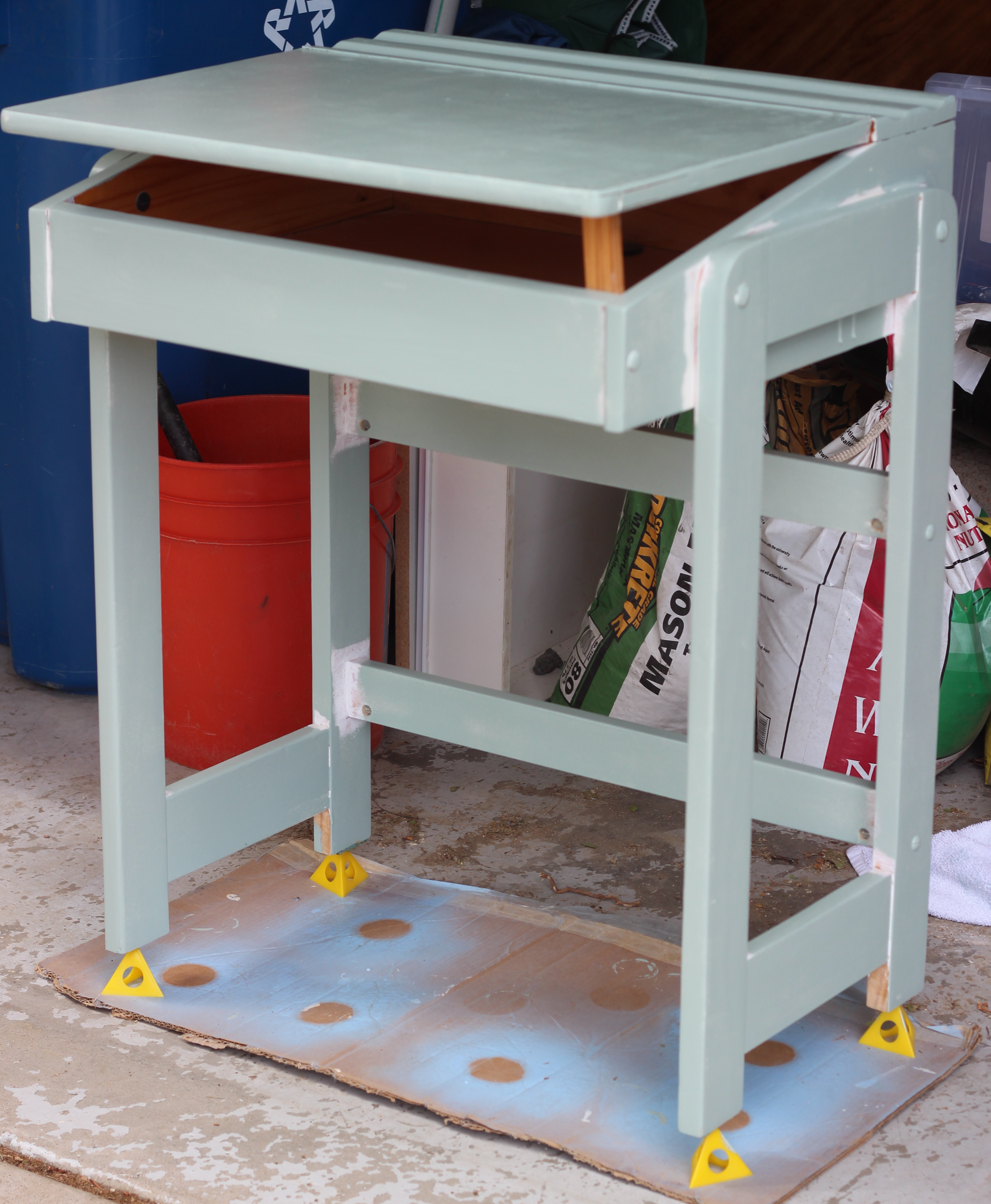 Hubby had found me a desk for the boys a few months back on craigslist free and I have had it sitting in the garage. I had primed it and then was having a hard time deciding on a color. I then decided on the color and then had to find the time to get it painted. With hubby out of town for the week I decided I would get it done. I got it painted and then got it up in the space I had set aside for it… I love it! I will say that I did get a sense of accomplishment from it and I began thinking about tackling a few other painting projects I have.