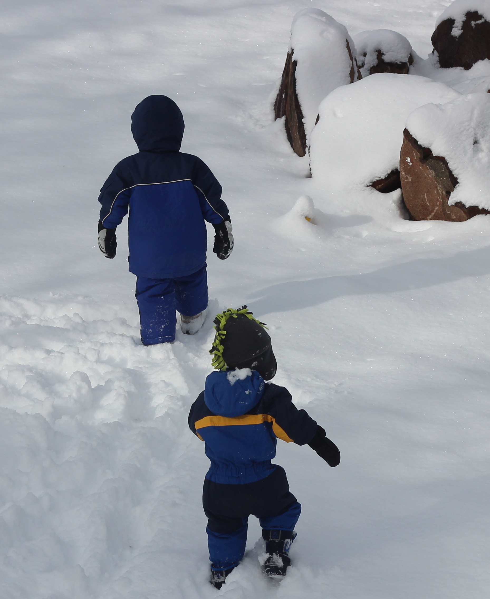 Yep, I am one of those moms that get my kids all dressed and then send them out into the snow and sit in the house and look down occasionally to make sure they didn’t freeze into little popsicles. Don’t get me wrong I love the snow but I have more of a look upon love rather than a get down and play in it kind of love. I enjoy the flakes falling, I enjoy the calmness that comes with it, I even enjoy being “stuck” in the house due to bitter cold… for only about a week! Little brother only lasted a short while out side because he does not understand that gloves have to stay on, yes it is difficult to play but freezing fingers makes it even more difficult. I had to bring him after I realized that his snow suit is a little too small and there was a ton of snow in his boots due to high water pants. So Aunt Missi, you will have a suit coming your way in the next week or two!