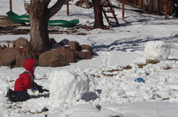 8792240Did you ever read the book, Just Go To Bed by Mercer Mayer?  We have lately been telling about boys, “Just go play”, whenever I say it I think of that children’s book.  For some reason they have become incapable of playing on their own, they are wanting constant approval and connection from me… it is driving me bonkers.  I realize there is a time and place to play with your children, don’t get me wrong.  I am just talking about those days where I have played with them, read a book and spent some time with them and they still seek me out.  I find myself telling the boys multiple times a day and triple the times on the weekend… “Just go play!”  Can it really be that hard to go play?  Hubby today sent the boys to the back yard and said have fun!  We got snow yesterday and although the sun was shinning today it was a little chilly, however snow was melting and there was the perfect chance to send them on their way and have them build snow men and just roll around in the snow.  Our boys characters always become very evident when we send them out… big brother has a task to complete, middle brother sits and supervises and little brother usually does his own thing until big brother gets his project done and then decides to destroy it!  Yep, a vicious circle of little boy play.