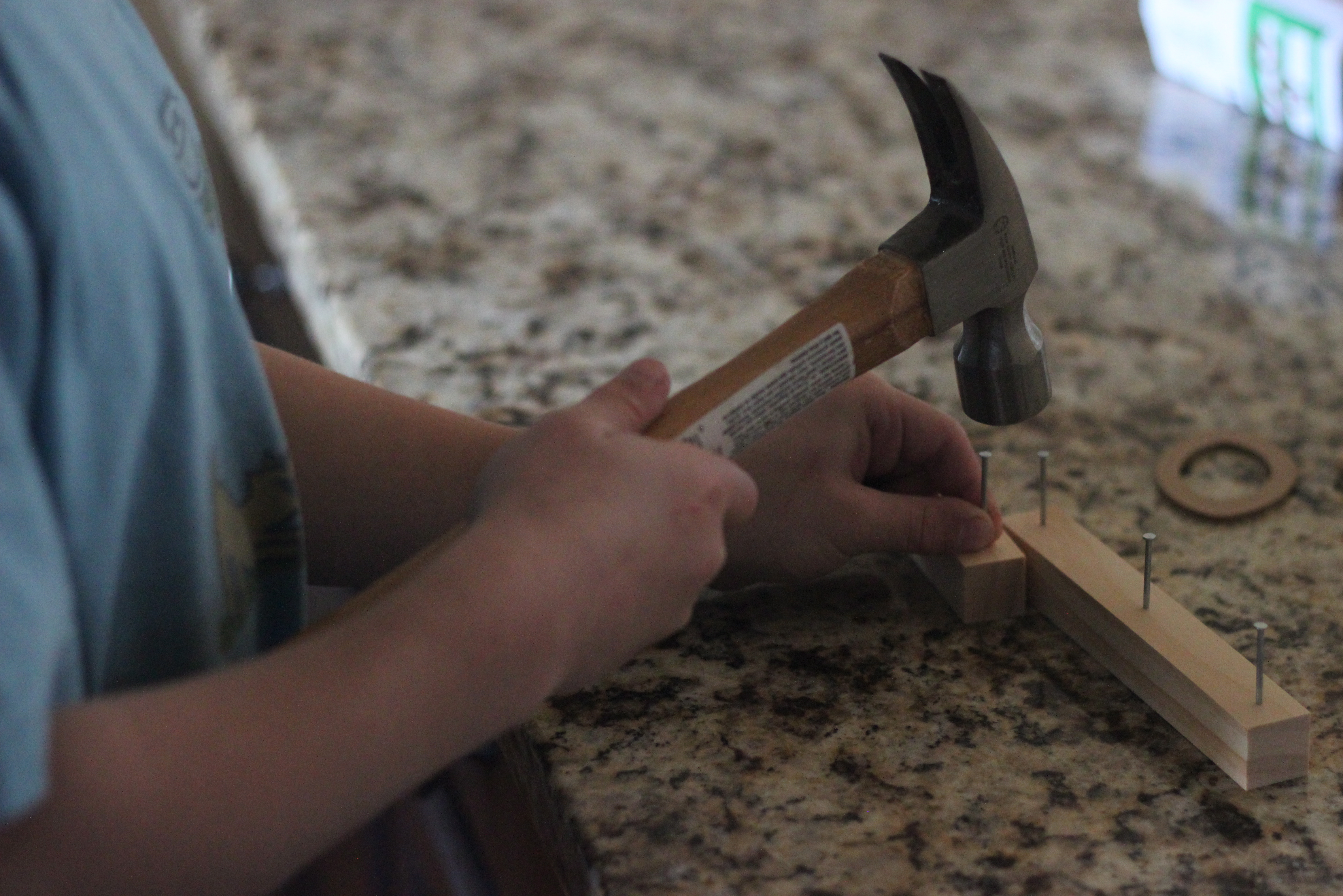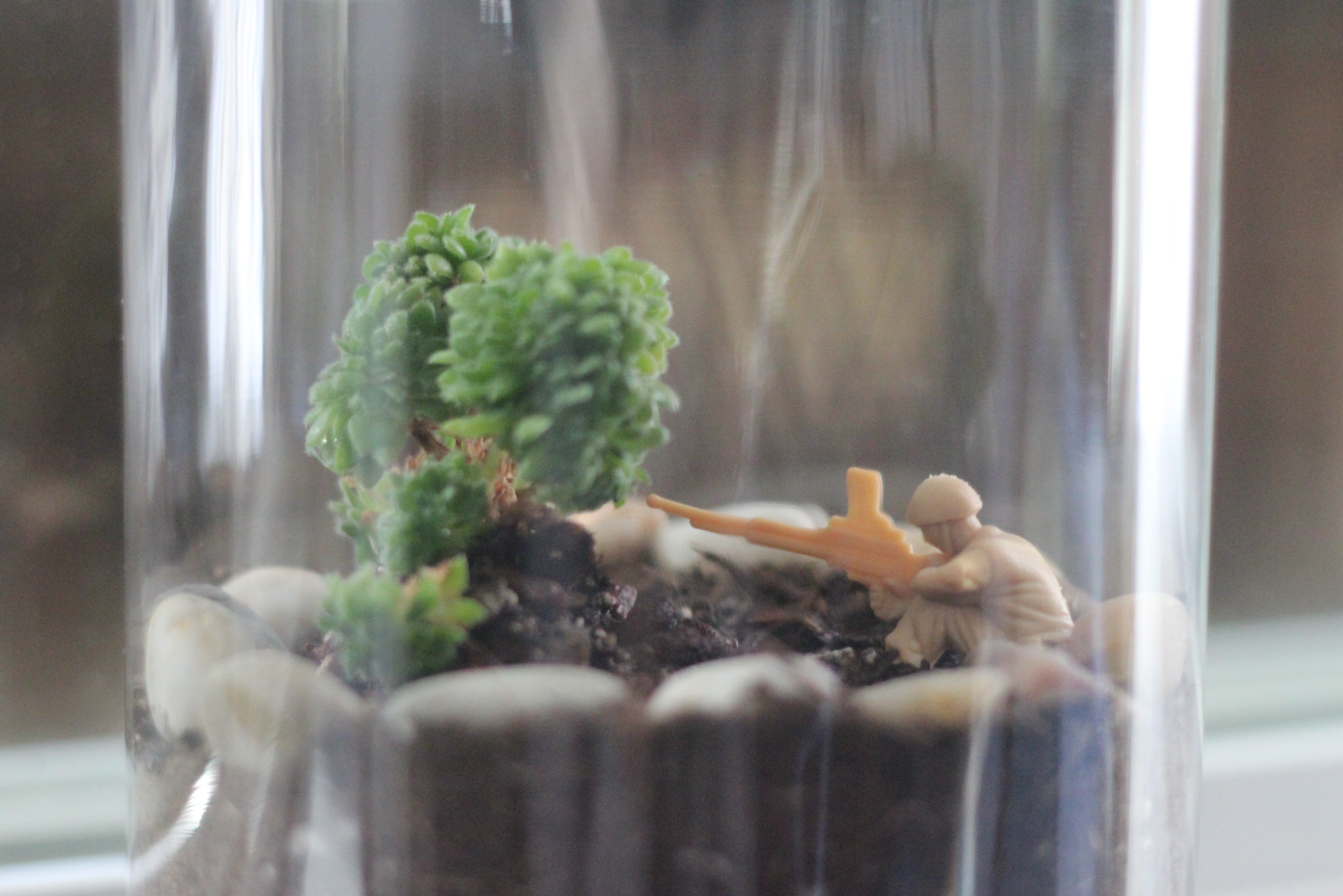 Big brother has had a four-day weekend and today daddy headed to work and I knew I needed to find things to keep three little boys busy. We have been trying to eliminate television watching time and tablet time… which we have been doing a lot of the last few weeks due to frigid temperatures and snow falling. This morning I had some picking up to get done then we headed to our local nursery and then to Home Depot. I thought the boys might enjoy making terrariums, although I am using that word lightly. While at our local nursery we found a lot of neat plants and a few “fairy garden” items, I spent way too much money and realized that I might be better off going to Home Depot. We walked into Home Depot and the greeter said that she had left over from the kids workshop and gave them to the boys. Now we had a fun football ring toss to build and we still needed to search for terrarium plants. Needless to say we had lots of items to keep these little boys busy.