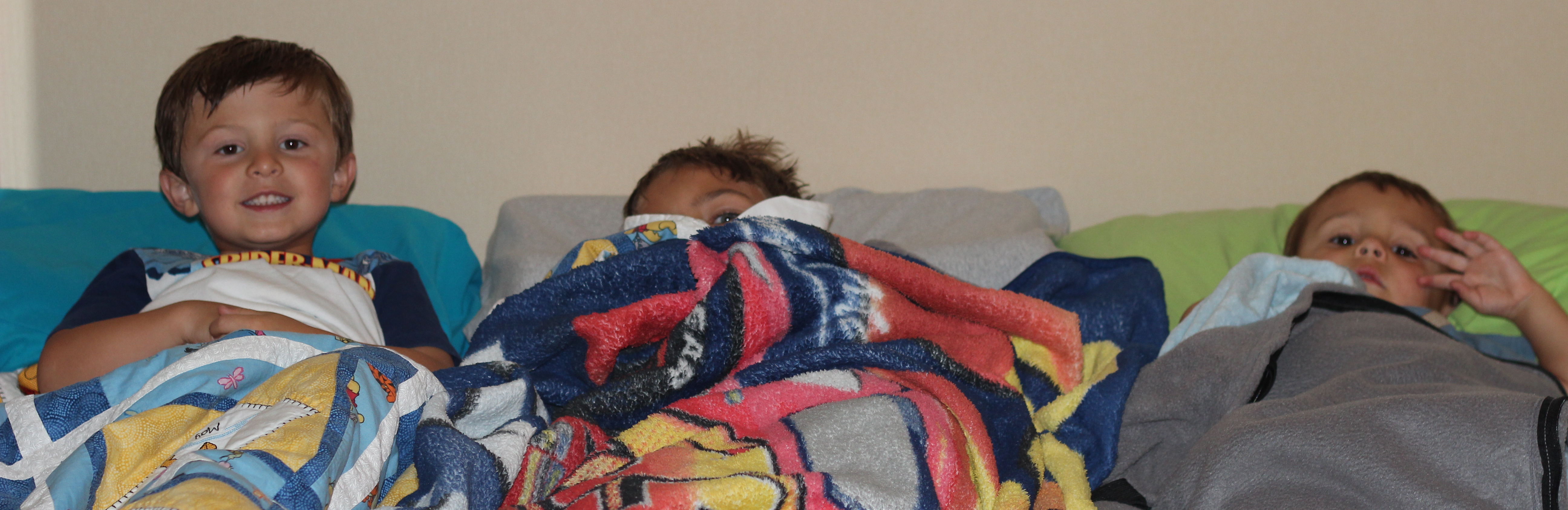 Hubby got done with work around seven then we went to dinner. After dinner the boys all climbed into the blow up bed and went to sleep.