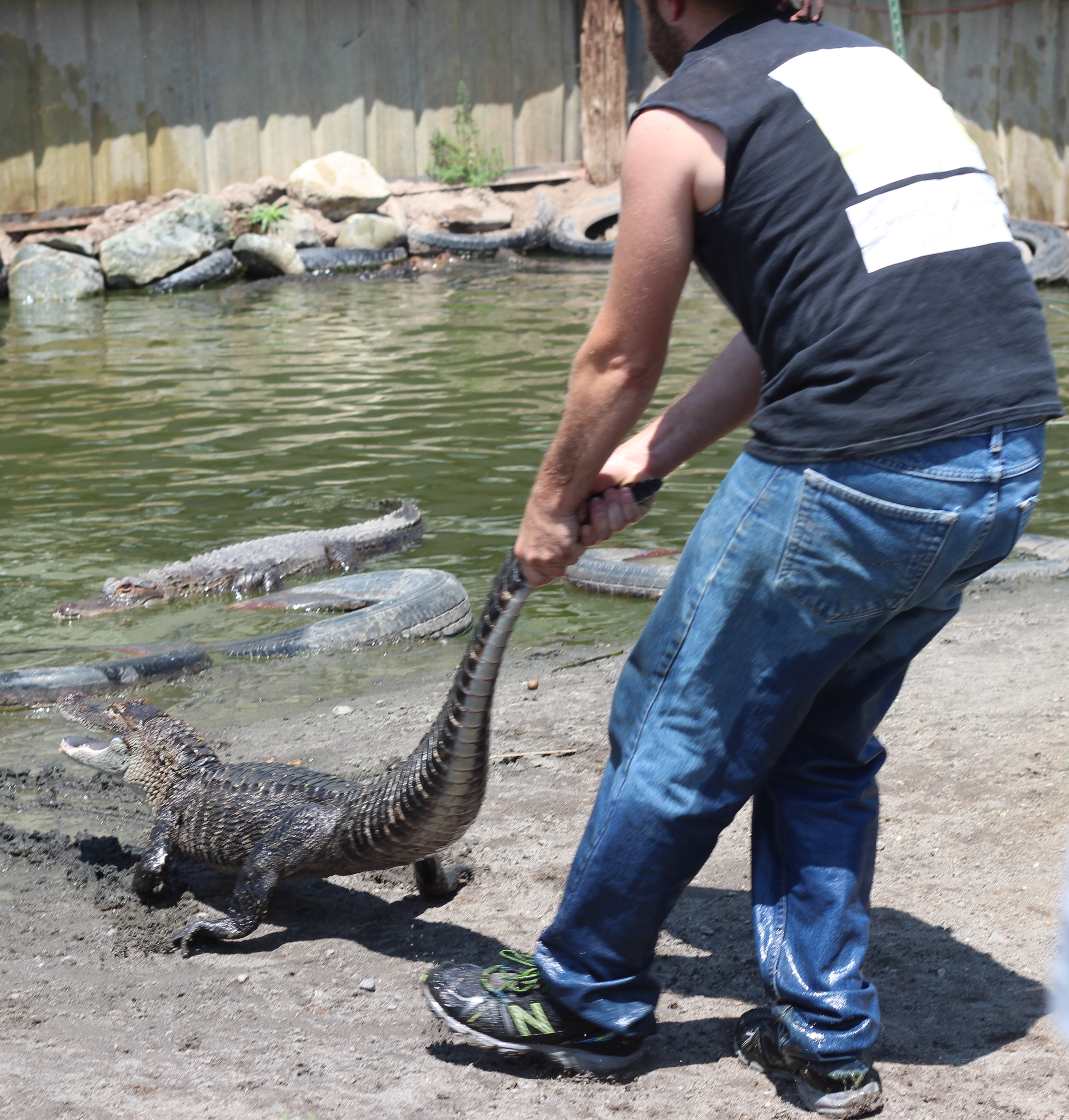 We found a gator farm to go to. The boys had a blast! Big brother got to hold a one year old gator. We got to watch gator wrestling, don’t think it is mean… when they bring up the gators out of the water they check them over, if there are cuts the clean it and them medicate it. After a few hours at the gator farm we headed back home. A four hour trip turned into five hours thanks to road construction. We got into town and were greeted with 102 temperatures! UGH! Got home to the inside temp being 92. I got everything unpacked and then spent a few hours watering our yard… only now we are having a huge storm and all that watering and time was wasted. Hate it… but also love it! All in all a great last minute road trip, the boys did great on the drive, we got to spend some time with daddy and we all survived!