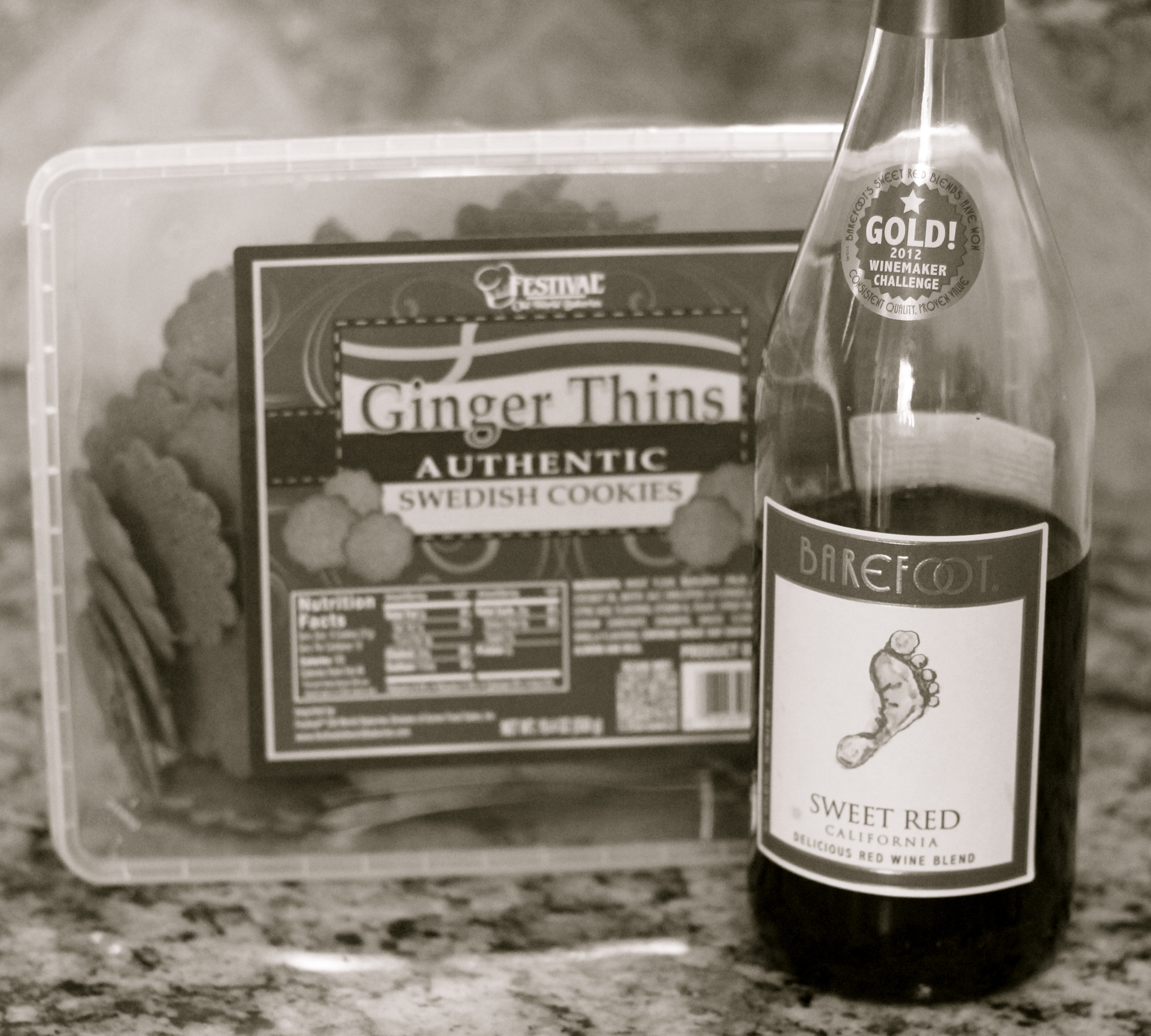 img_0942I know you have been breathlessly waiting… hehehe, but I found a new little treat for myself.  I am not a red wine drinker normally, I always think red wine tastes like licking shag carpet (don’t ask), but I am totally willing to make an acceptation for this.  My mom shared this little wine treasure with me back in December when I was in San Diego visiting and every now and then I stop at Tipsy world and get myself a bottle.  Well a happy little accident happened tonight, I was having a glass and decided that I was a little hungry so I grabbed out the ginger snap cookies that hubby bought at Costco and my palette was oh so happy.  The combination was a very happy accident that I am sure will make a few more appearance in the near future!