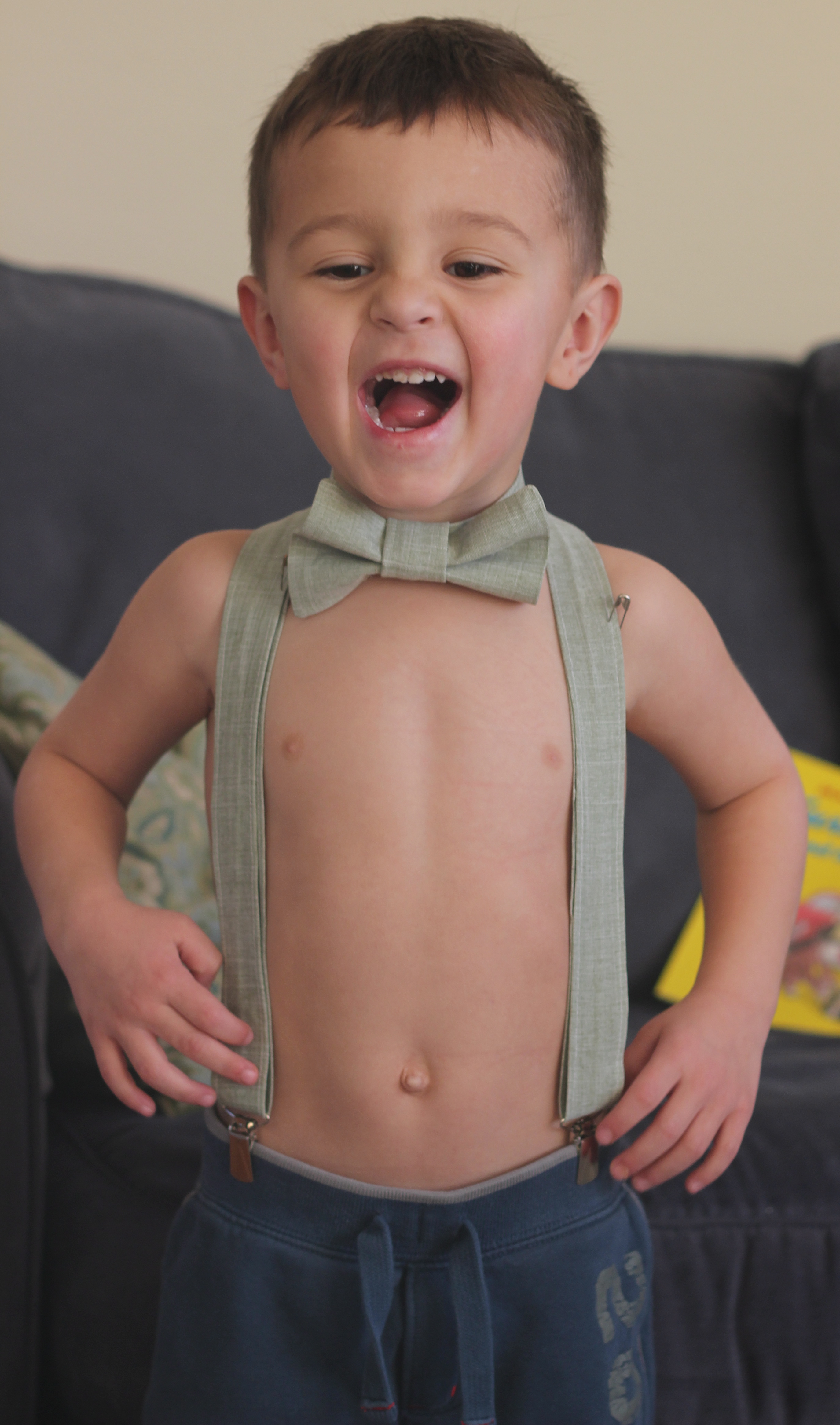 img_9756So my little sister is getting hitched in March and the boys and I are going to be in the wedding.  I am helping my sister with some of the wedding planning which has been a blast!  I am thinking I see a future in something along those lines!  My sister sent sample bow tie and suspenders for me to size our boys in and I had to snap some pictures of them.  Today we have enjoyed temperatures in the high sixties, hence the shirtless boys.